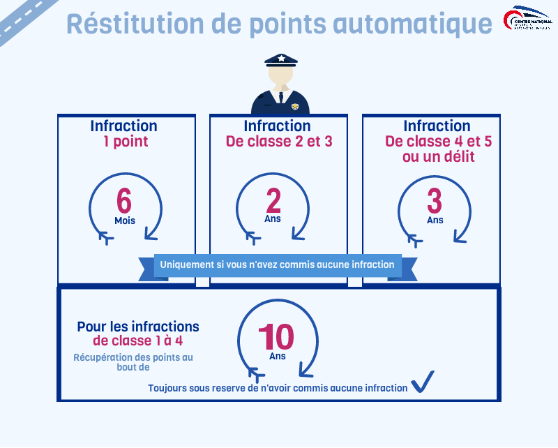 - 1 point perdu pour une infraction sera récupéré au bout de 6 mois sans infraction.